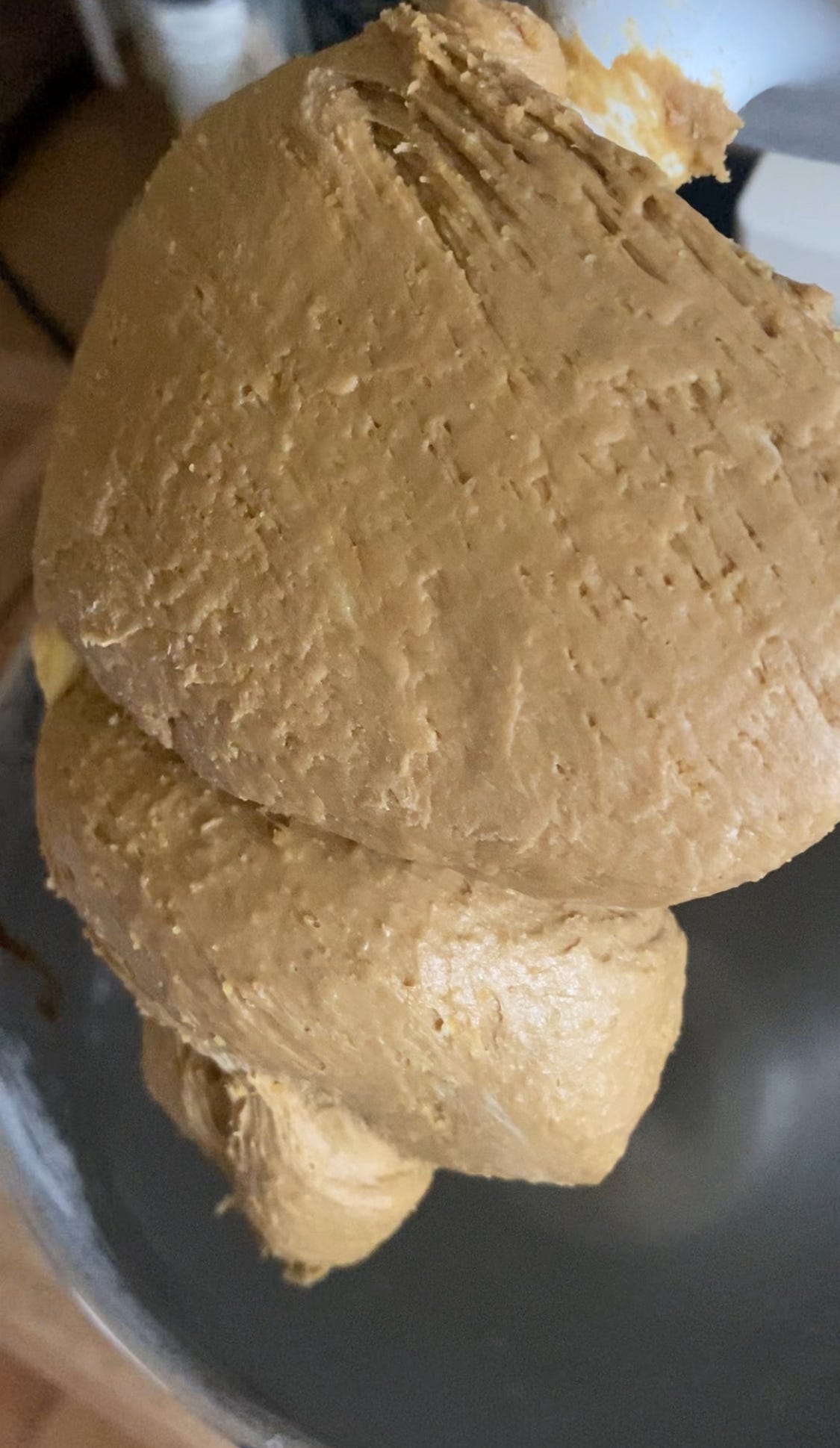 Switch to a dough hook on your stand mixer, or use a lightly floured clean work surface to knead out the dough by hand, kneed for at least 5 minutes, adding in the butter (½ stick/57g) piece-by-piece as you work