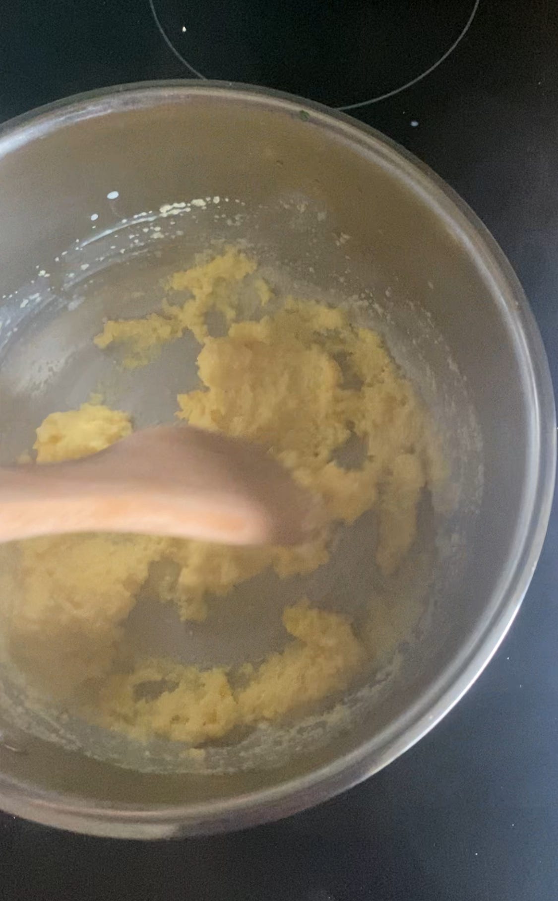 Whisk continuously on medium/low heat for about 4 minutes until you essentially have par-cooked polenta